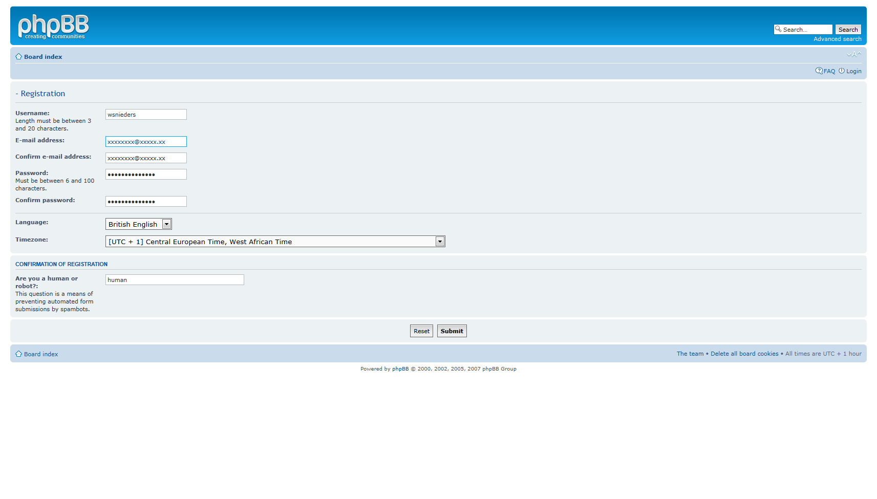 Will sich jedoch ein Besucher im Forum registrieren, kann er sehr wohl die Sprache auswählen und bekommt auch dann beispielsweise eine englische Frage gestellt. Auch dazu habe ich mal ein Bild gemacht:
