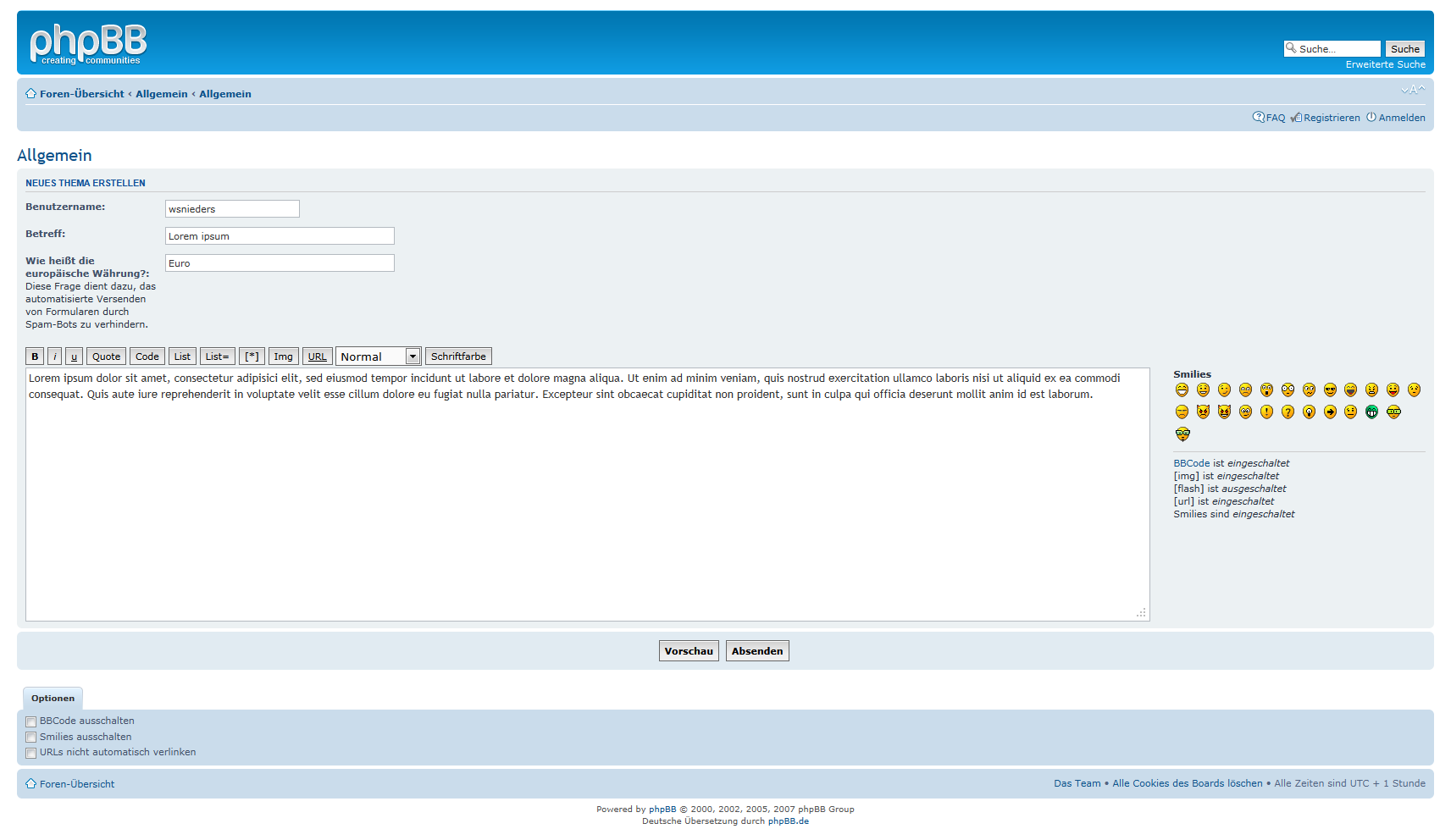 Wenn man nun als Gast ein neues Thema oder eine Antwort erstellt, sieht das dann mit der Sicherheits-Frage wie folgt aus: