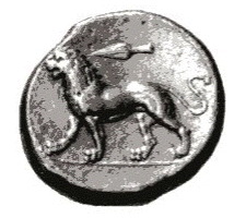 Am ehesten erinnert es wohl an eine Ähre. Damit ließe sich auch ein Bezug zur Münzbildbotschaft herstellen. Ich finde es ohnehin interessant zu klären, warum der Delfin "getreten" wird und nicht Fels / Prora / Rammsporn.