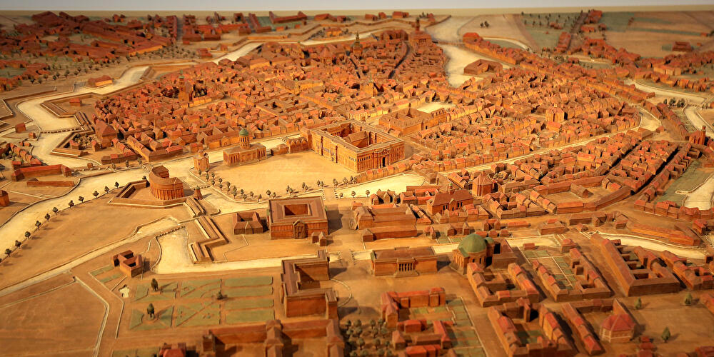 Hier mal ein Stadtmodell von ca. 1720 (mittig Französischer Dom und Stadtschloss):